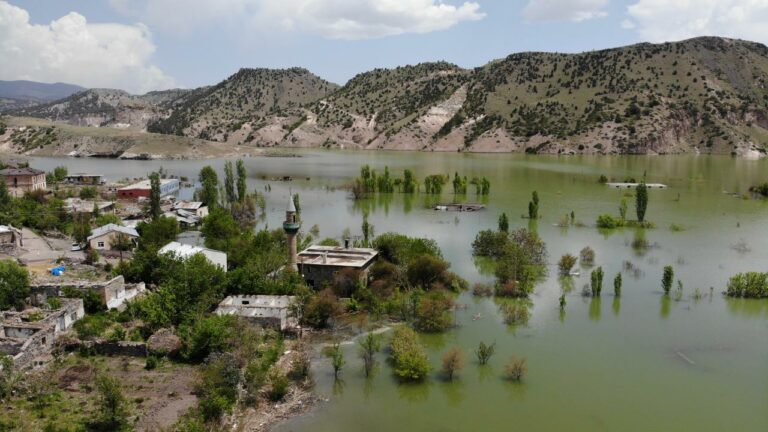 Потопено село од 2020 година повторно излезе на површината по пресушување на езерото Каракурт