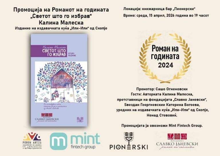 Промоција на Романот на годината за 2024 „Светот што го избрав„ од Калина Малеска