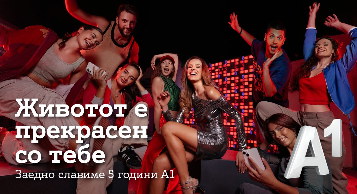 А1 Македонија, телекомуникациска компанија членка на Групацијата А1, ја прославува својата петта година од претставувањето на брендот на македонскиот пазар. Компанијата е горда на своите достигнувања во минатите пет години исполнети со иновативни дигитални решенија, богато конвергентно портфолио, најатрактивни понуди и воведување нови технологии и содржини со кои ја овозможува дигитализацијата на целото општество.