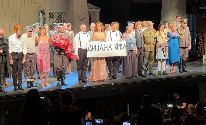Актерите од театарот „Теразије“ во Белград, по претставата „Балкан експрес“ развија транспарент со името на мајката чиј син загина при уривањето на настрешницата пред театарот. Гестот, кој предизвика силни емоции кај присутните, беше изведен непосредно пред почетокот на претставата, во знак на сочувство и човечка поддршка.