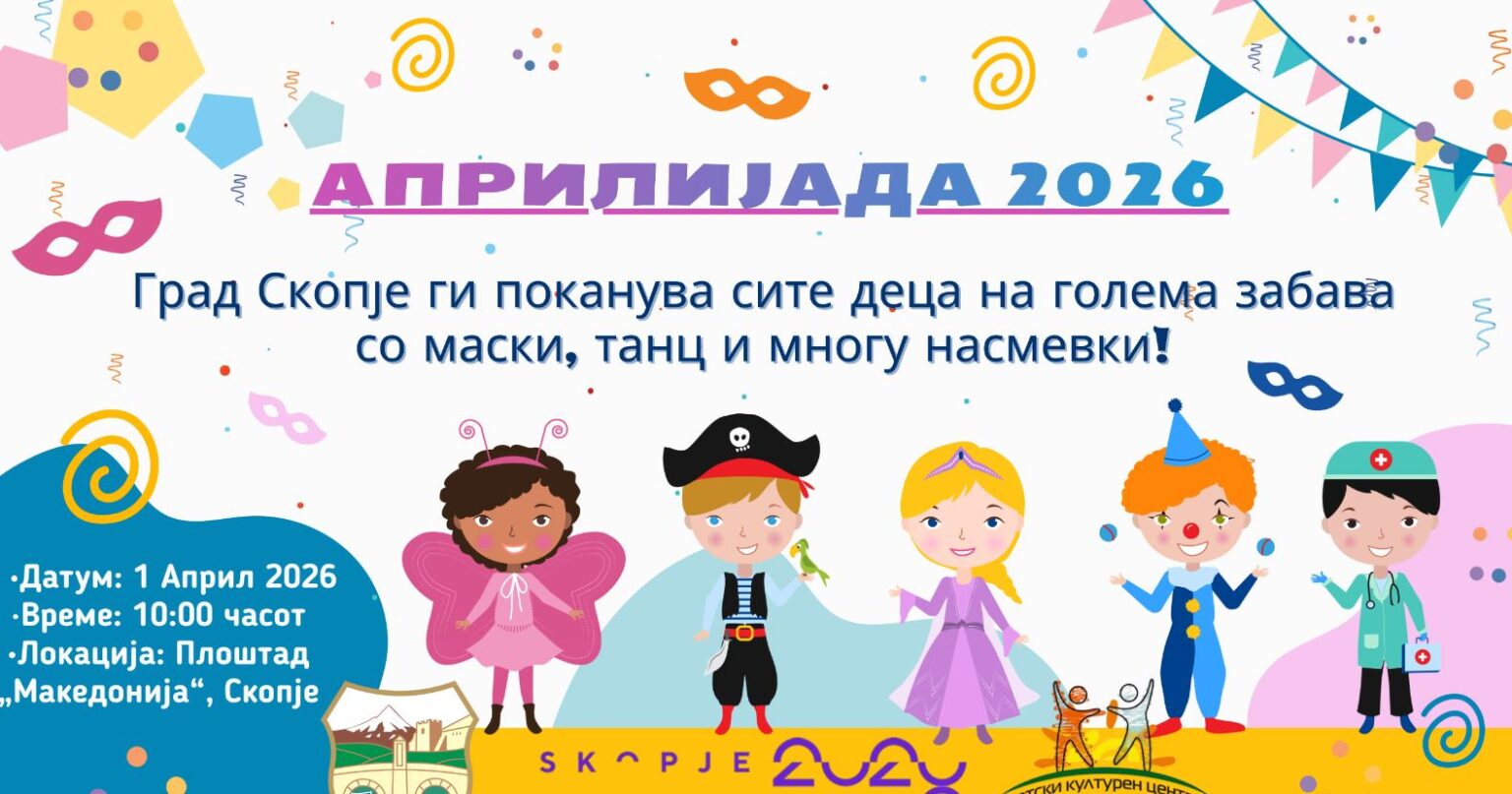 Скопје повторно ќе биде домаќин на популарната манифестација „Априлијада“, која традиционално се одржува по повод 1 Април – Денот на шегата. Настанот е наменет пред сè за деца, но привлекува и голем број родители и граѓани кои сакаат да уживаат во креативна и весела атмосфера.