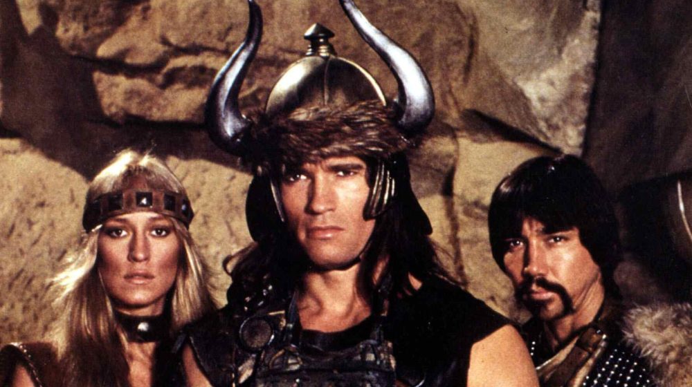 Првиот филм излезе во 1982 година, каде Шварценегер го игра Конан кој бара одмазда од лидерот на култот, Тулса Дум, во изведба на Џејмс Ерл Џонс. Филмот заработи 68 милиони долари, стана култен класик и го направи Шварценегер ѕвезда. Продолжението, „Конан Уништител“, следеше две години подоцна.