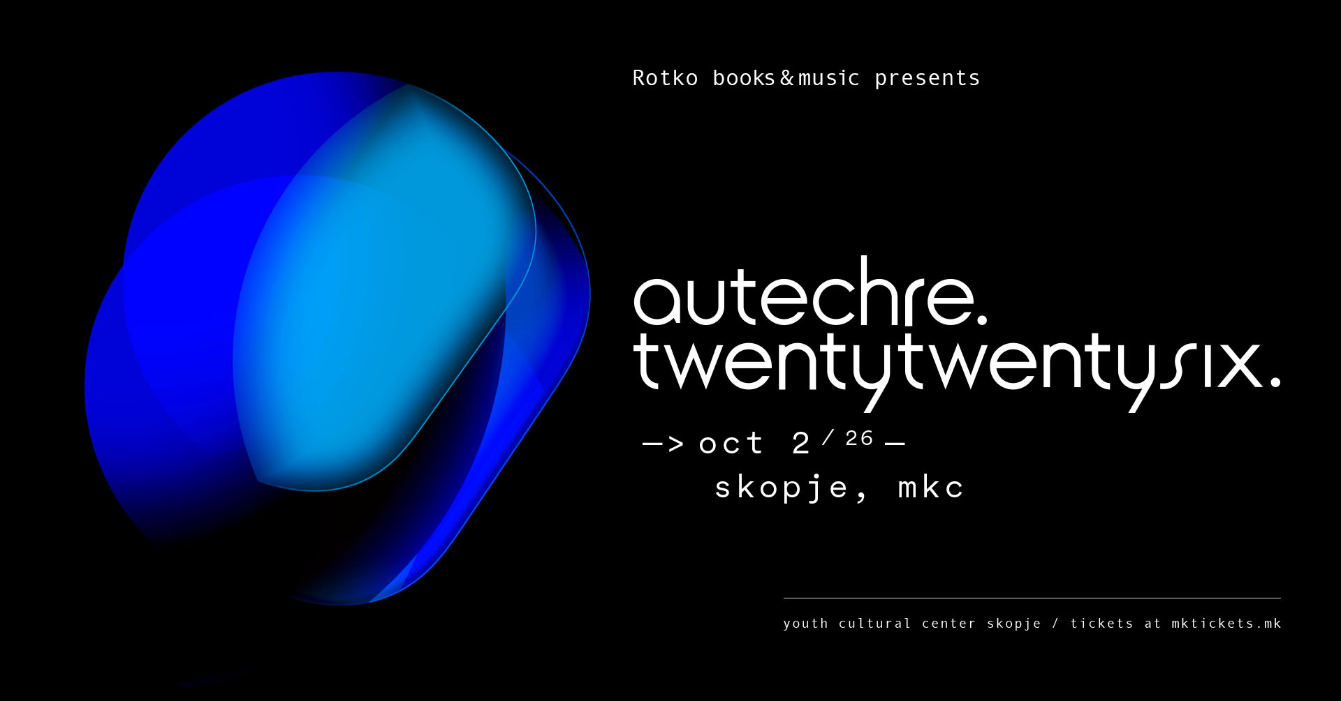Autechre, едни од највлијателните и најиновативни пионери на глобалната електронска сцена, за првпат ќе настапат во Скопје во октомври 2026 година. Настанот го најавува ROTKO books&music, најавувајќи редок и исклучително значаен музички момент за локалната сцена.