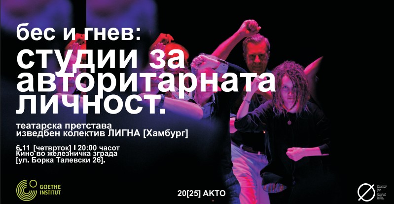 Во четврток, 6 ноември 2025, со почеток во 20:00 часот, во Киното во железничката зграда (ул. Борка Талевски 26, Скопје), ќе се одржи интерактивната театарска претстава „Бес и гнев: студии за авторитарниот карактер“ на изведбениот колектив ЛИГНА од Хамбург.