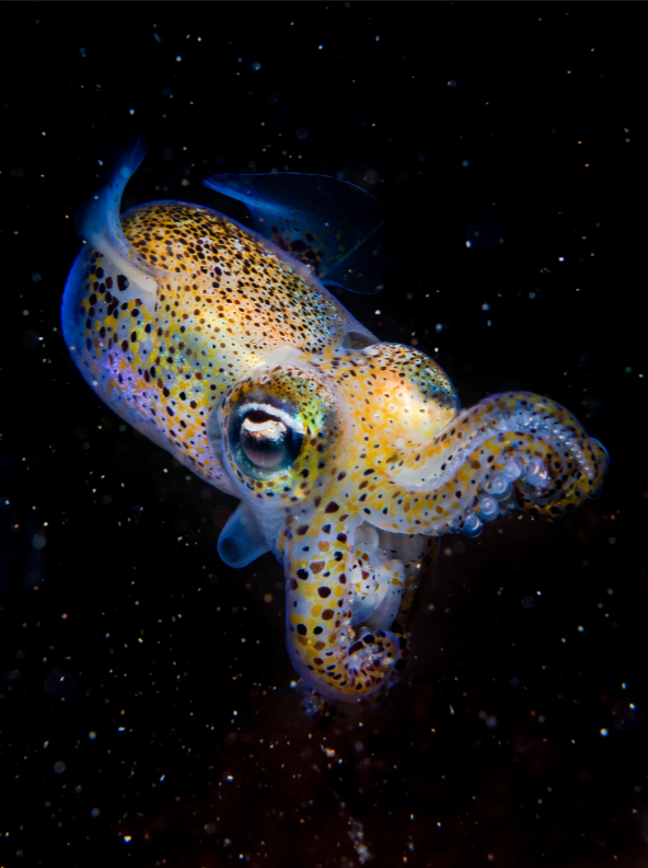 14.Вонземјански опаш, од Кирсти Ендрјус – второпласирана во категоријата за брег и морски фотографии | Опаш од лигња (Sepiola atlantica) под пристаништето Пеингтон, Девон, Англија