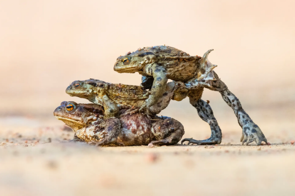 19.Шлепање од Џејмс Роди – победник во категоријата –  Однесувањето на животните | Вообичаени жаби (Буфо буфо), Кромарти, Шкотска