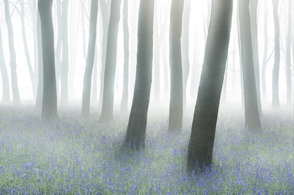 – „ На остатоците од тврдината од железното време на ридот Бадбери во Оксвордшир, се наоѓа Балдбери Кламп. Тоа е област со прекрасни букови шуми, обложени со сини ѕвоно цвеќиња. Конкретно ова утро, се спушти густа магла, создавајќи магична, етерична атмосфера и беше прекрасно искуство да се биде присутен во шумата со камерата во рака. Фотографирајќи на светлината, ме погоди чувството на бескрајност додека буковите морничаво се соединуваа во тивката, маглива нејасност“.