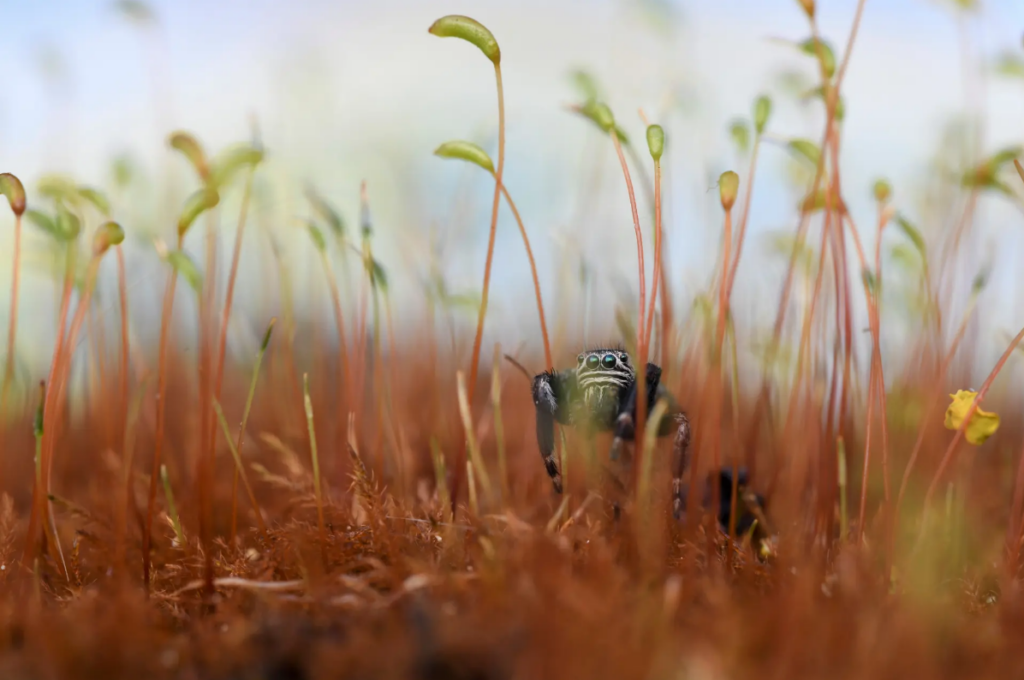 9.Металик скокачки пајак во Мос, од Вил Аткинс – второпласираниот во категоријата неоткриена Британија | Скокачки пајак (Evarcha arcuata), Пурбек, Дорсет, Англија