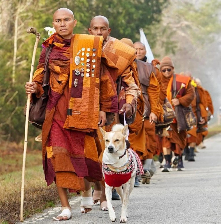 Облечени во препознатливи портокалови мантии, дваесет и четворица будистички монаси пристигнаа во Вашингтон по 3.700 километри долг „Поход за мир“ – духовно патување низ девет американски сојузни држави, во кое беа пречекани од илјадници луѓе.