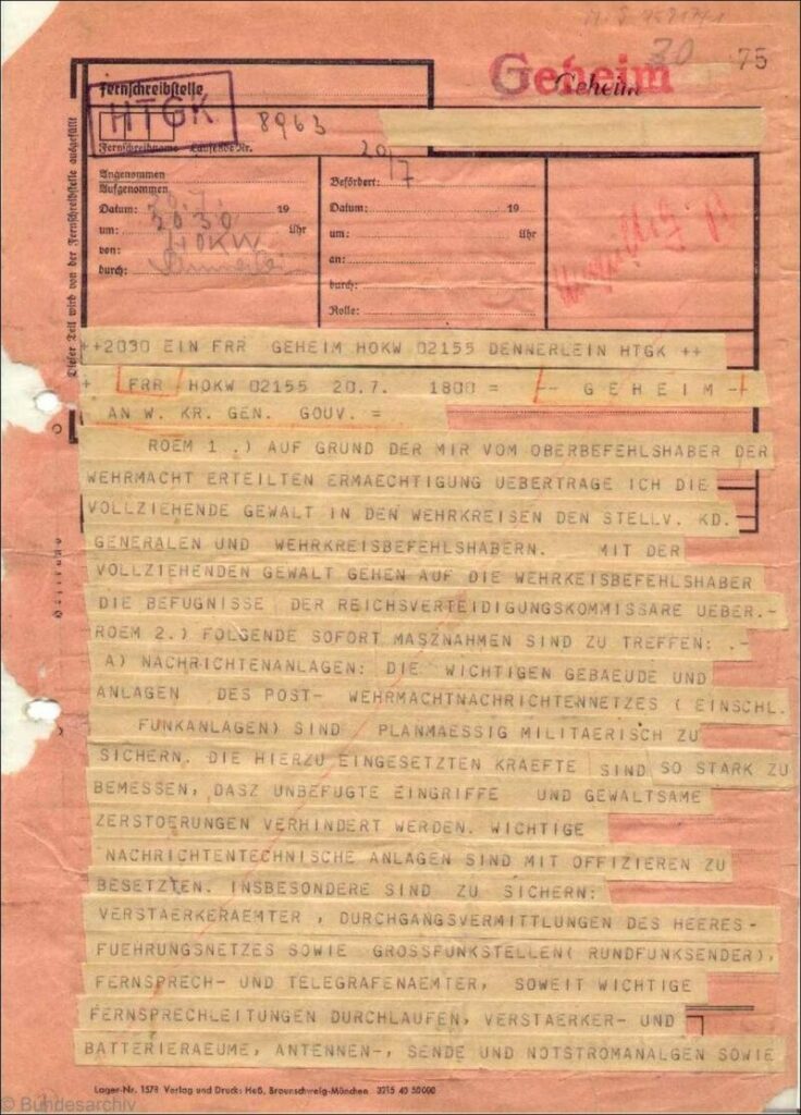 Во Берлин, Штауфенберг веднаш ја активирал операцијата „Валкирие“, наредувајќи апсење на СС и преземање на институциите. Но поради доцнење, лоша комуникација и колебливоста на генерал Фром, планот се распаднал. Хитлер телефонски се јавил лично – доказ дека е жив – со што пучот дефинитивно пропаднал.