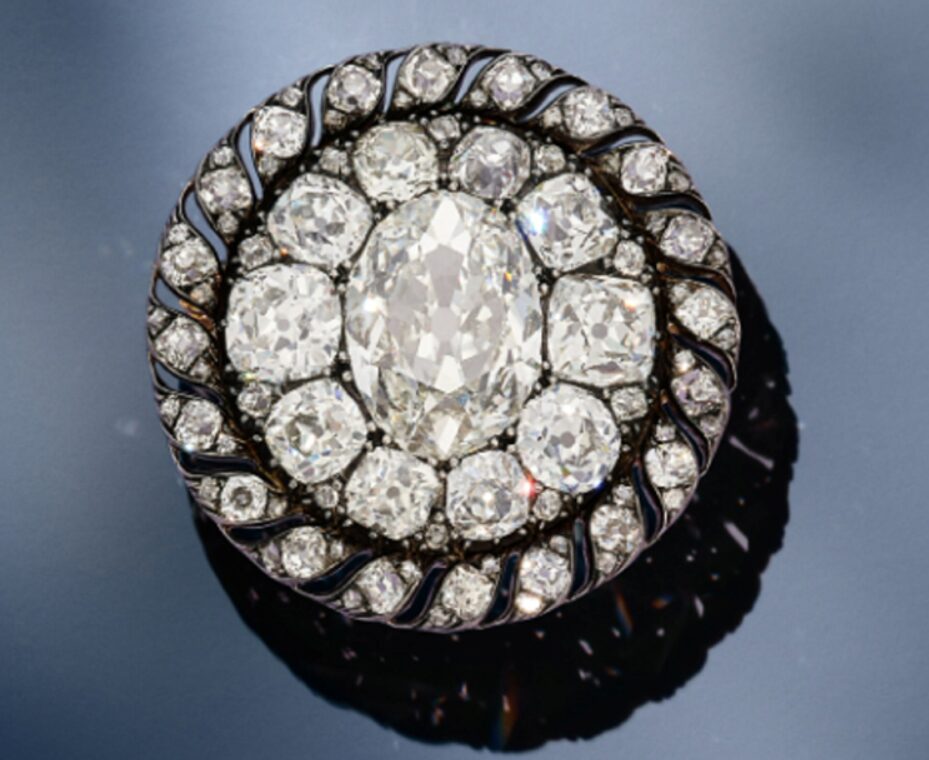 Според Sotheby’s, овој уникатен накит, кој може да се носи и како приврзок, е украсен со овален дијамант тежок повеќе од 13 карати, опкружен со помали скапоцени камења. Брошот бил пронајден меѓу личните работи на Наполеон во царската кочија која останала заглавена во калта за време на неговото повлекување по поразот во битката кај Ватерло.