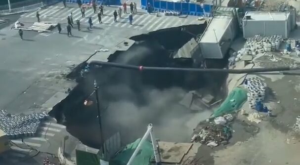 Голема дупка се отвори на фреквентна раскрсница во Шангај, Кина, откако дел од коловозот ненадејно се урна и создаде масивна каверна што проголта дел од патот, огради и градежна опрема.
