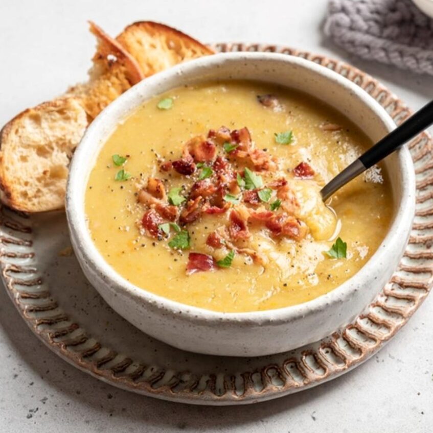 Леќата е вистинска протеинска бомба, богата со влакна, железо и минерали, а во комбинација со димена сланина и слаткиот вкус на бататот, се претвора во густа, ароматична чорба којашто е идеална за студени денови.