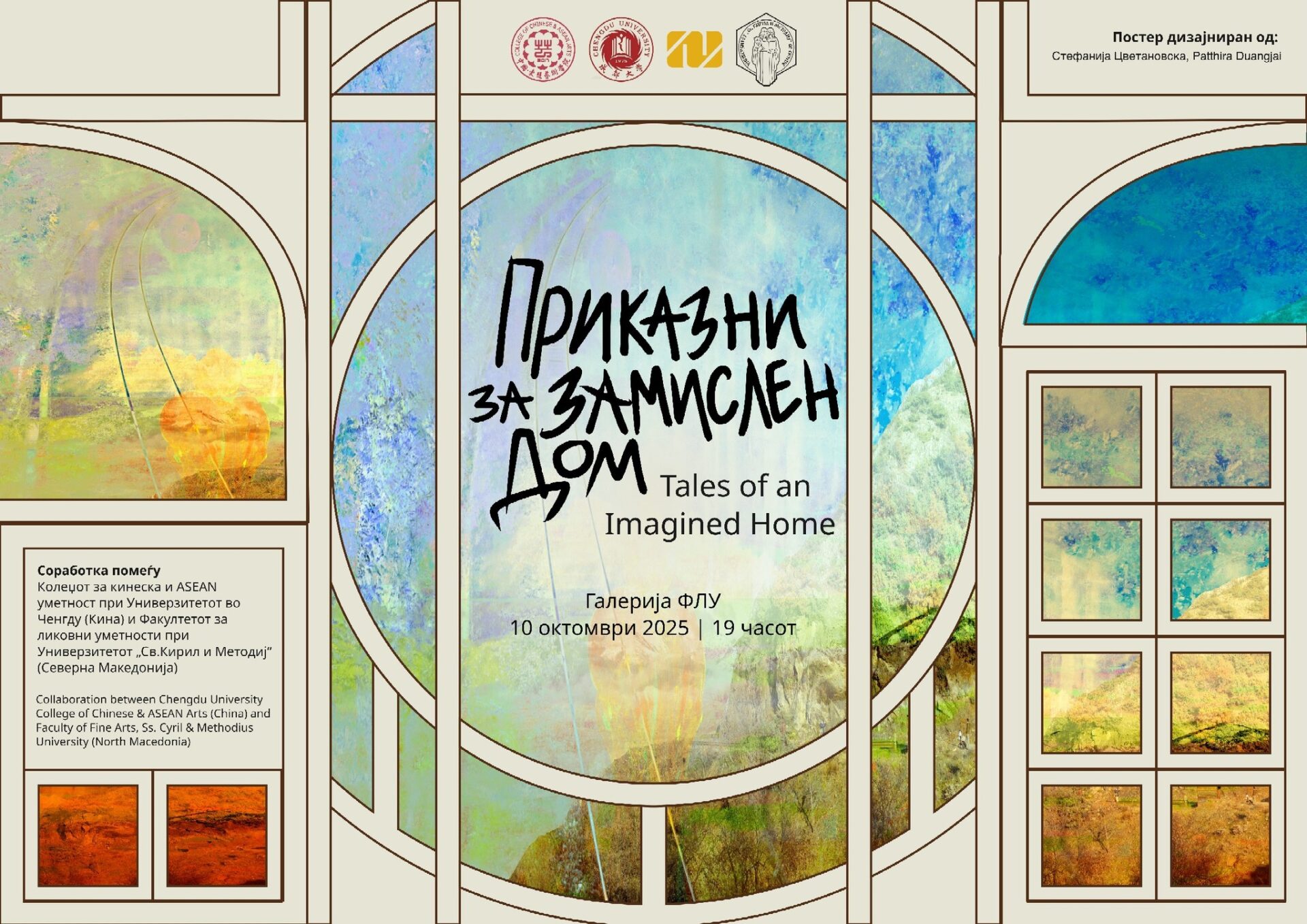 Паралелно со оваа активност, во тек е и подготовката на изложбата „Приказни за замислен дом“ („Tales of an Imagined Home“) – резултат на повеќемесечната соработка меѓу студенти и наставен кадар од Факултетот за ликовни уметности во Скопје и Колеџот за кинеска и ASEAN уметност при Универзитетот во Ченгду (Кина). Изложбата ќе биде отворена денеска (10 октомври), во 19 часот, во Галеријата на ФЛУ (објект Педагошка).