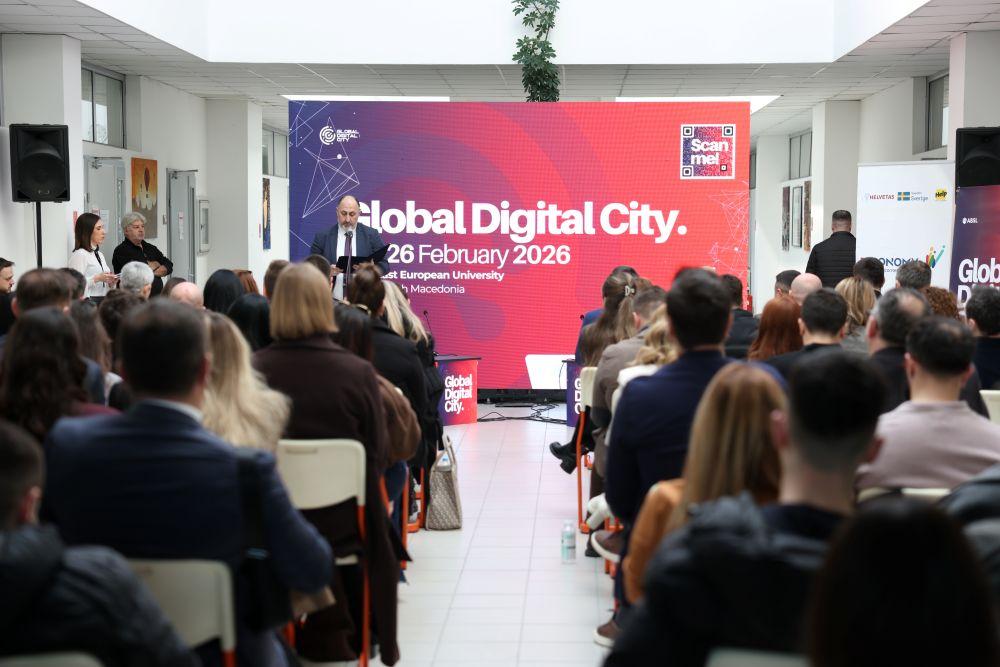 Дводневната конференција Global Digital City 2026, која се одржа на 25 и 26 февруари во Универзитетот на Југоисточна Европа во Тетово, успешно ги обедини институциите, бизнис лидерите, меѓународните партнери, академската заедница и младите, со цел да се отвори дискусија за иднината на секторите за аутсорсинг на бизнис процеси (BPO) и информатичко-комуникациски технологии (ИКТ), развојот на работната сила и можностите за вработување на младите.
