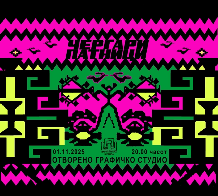 Во организација на „Партизанска штампа“, вечер во галеријата на Отворено графичко студио ќе биде претставена изложбата „Чергари, патници“ – уметничко патување низ архетипите на колективната меморија, традиционалната македонска орнаментика и современата графика. Проектот опфаќа изложба на графики и книга во сито печат, создадени во изминатата година во студиото на „Партизанска штампа“.
