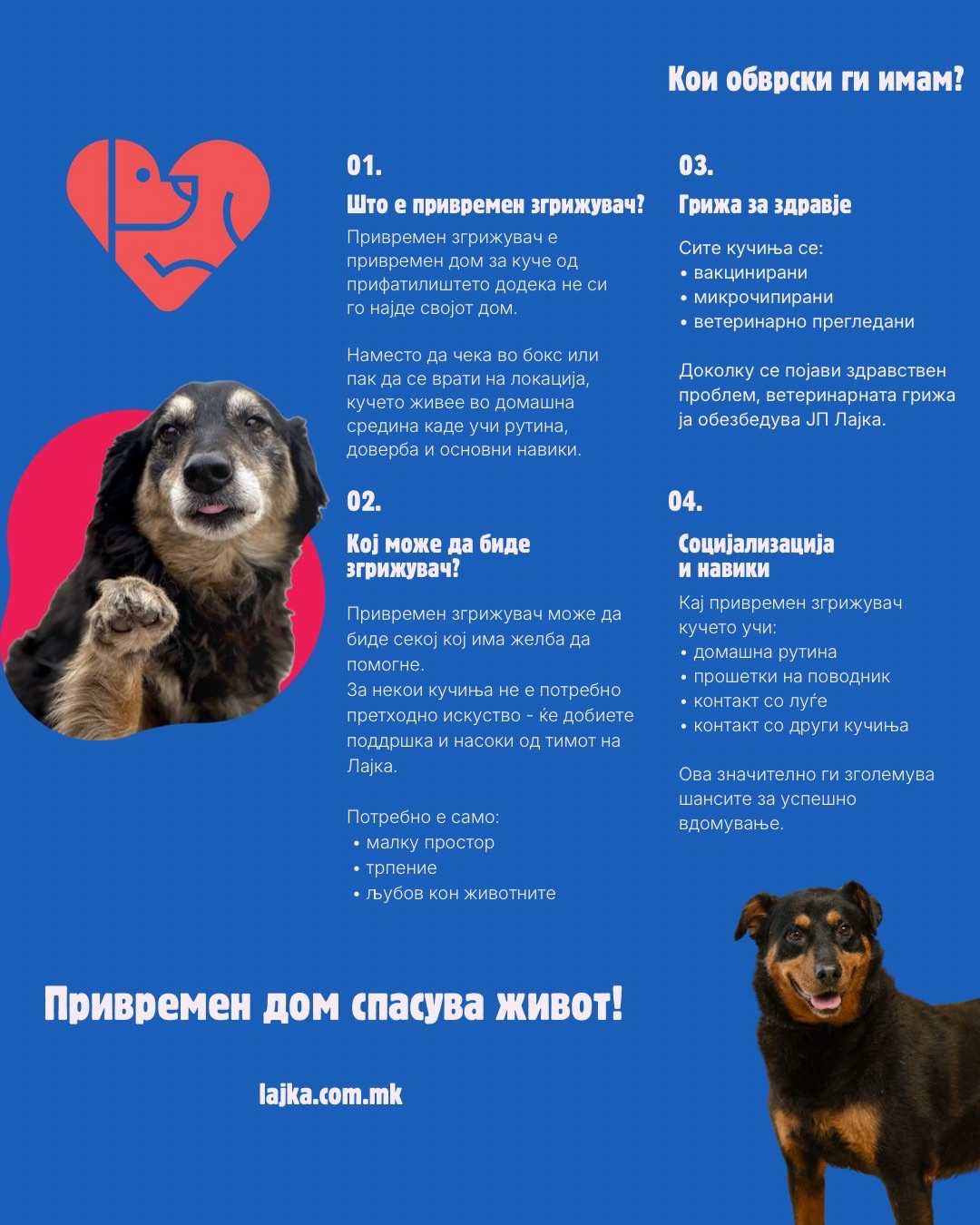 Јавното претпријатие за хуман третман на бездомни кучиња Лајка ја интензивира својата мисија за општествено одговорно вклучување на граѓаните со нова програма за привремено згрижување, со цел подобрување на благосостојбата на кучињата и зголемување на стапката на вдомување.