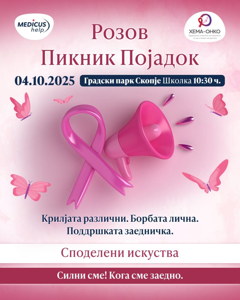 На настанот кој е организиран во партнерство помеѓу ХЕМАОНКО – HEMAONKO и Medicus Help ќе имате можност да слушнете и видите вистински приказни од жени кои поминале низ оваа борба. Тие ќе ги споделат своите искуства, предизвици и победи – за да инспирираат, охрабрат и потсетат дека никој не треба да се бори сам.