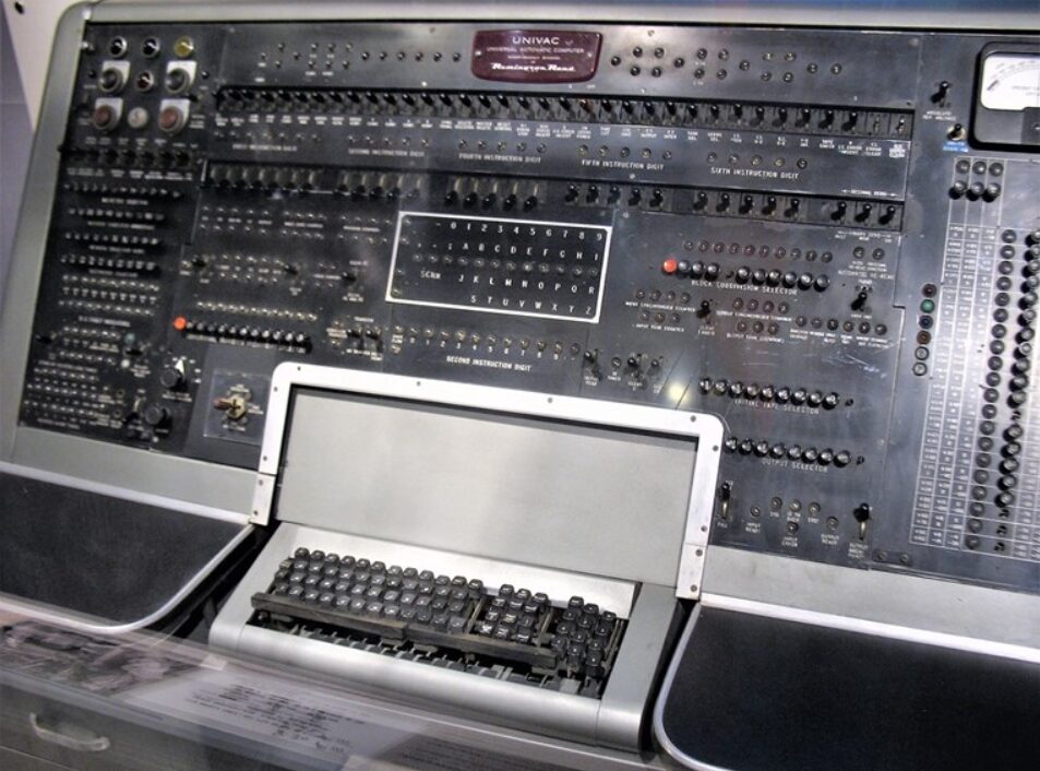 Станува збор за UNIVAC I, машина тешка околу 13 тони, која зафаќала простор од 35,5 квадратни метри и чинела околу еден милион долари, сума што денес би вредела десетици милиони.Неговото појавување во 1951 година означило премин од академски и воени експерименти кон практична и деловна примена на компјутерите.