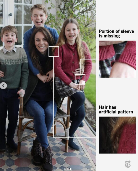 Новинските агенции, вклучително Ројтерс, Асошиејтед прес и АФП ја повлекоа фотографијата подоцна во текот на неделата. Уредниците на фотографии на Ројтерс рекоа дека дел од ракавот на на ќерката на Кејт не бил правилен, што укажува на тоа дека фотографијата е изменета.