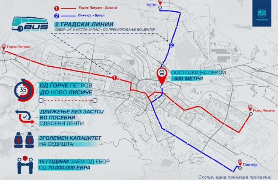 Проектот за BRT беше промовиран во 2021 година од администрацијата на поранешниот градоначалник Петре Шилегов, по официјалното соопштение на ЕБОР во април истата година.