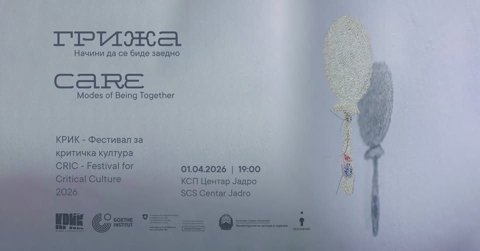 Денес, први април, со почеток од 19:00 часот, во КСП Центар – Јадро, ќе започне фестивалот за критичка култура 2026 – КРИК во релација со овогодинешната тема „Грижа: начини да се биде заедно“.
