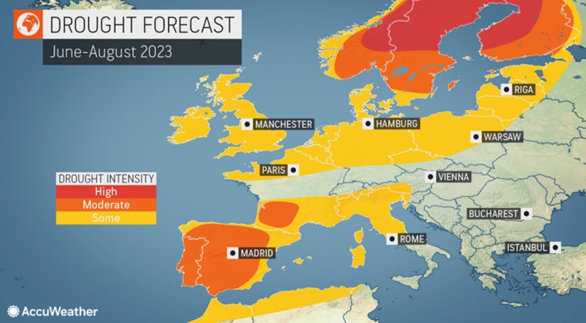 Областите во Европа на кои очајно им требаат врнежи ова лето веројатно нема да добијат помош од мајката природа, велат прогнозерите на AccuWeather.