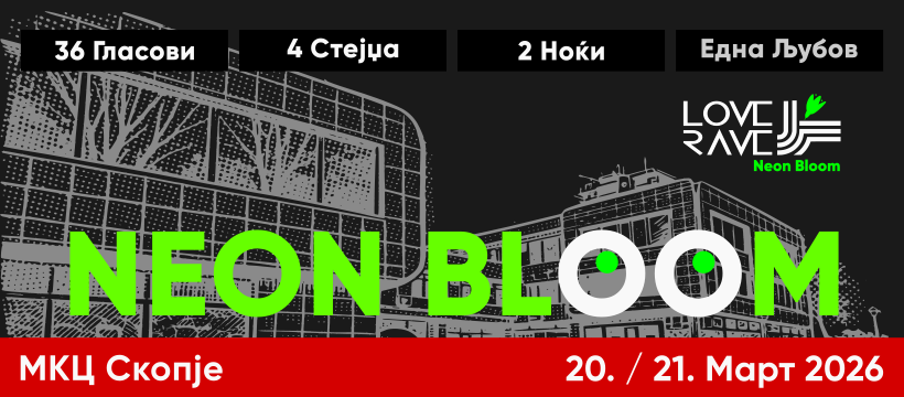 Во време кога младинската култура сè повеќе се преселува во дигиталните простори, LoVERAve Neon Bloom ја враќа енергијата таму каде што таа припаѓа – во жив контакт меѓу артистите и публиката, на сцената и пред неа. На 20 и 21 март, Младинскиот културен центар (МКЦ) повторно ќе стане простор на музичко поврзување, авторска слобода и генерациски дијалог.