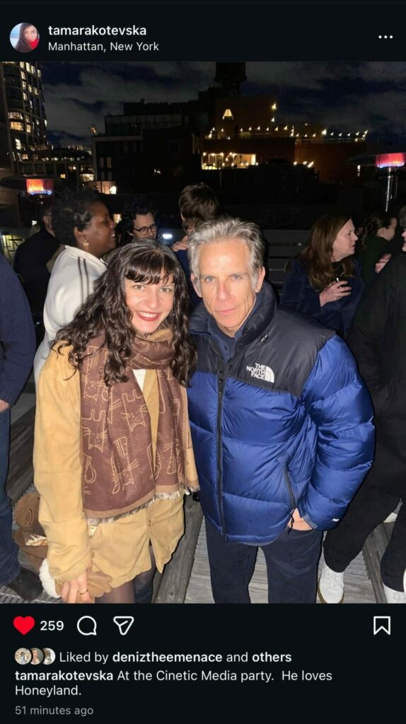 На настанот, Котевска беше фотографирана во друштво на познат американски актер. Во описот на објавата, таа открива дека актерот е голем љубител на „Honeyland“, документарниот филм кој ѝ донесе светска слава и повеќе престижни награди.