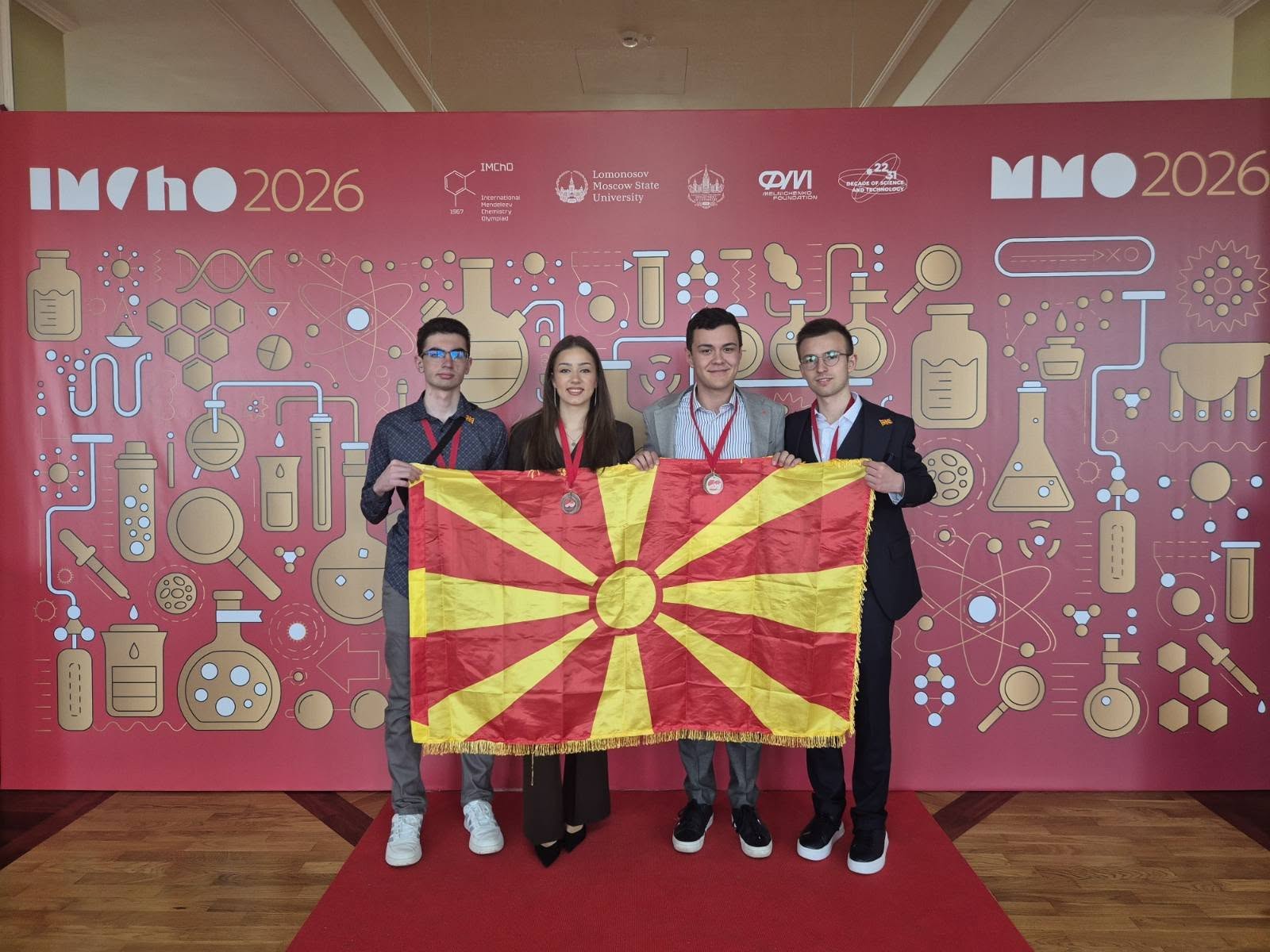 Македонскиот тим освои два бронзени медала на 60-тата Меѓународна олимпијада по хемија – Менделеев, што денеска, на 22 април 2026 година, се одржа во Москва, Русија.