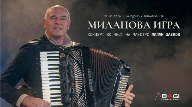 На 27 март, во Македонската филхармонија, со почеток во 20 часот, ќе се одржи концертот „Миланова игра“ – вечер посветена на творештвото на маестро Милан Завков, еден од најзначајните македонски композитори и виртуози на хармоника.
