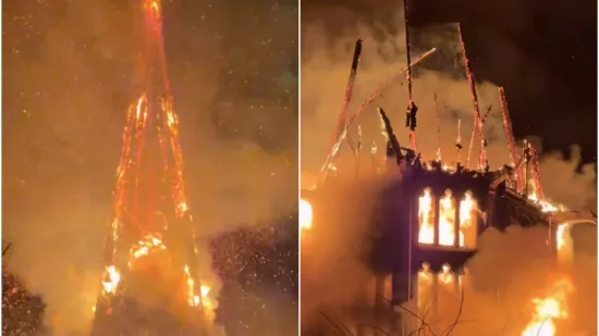 Според безбедносните служби, кулата, делови од главниот брод и делови од покривот се урнале. Зградата не може да се спаси.