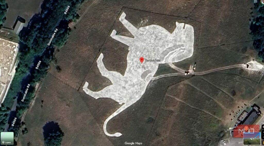 На ридови кај селото Випснејд се протега огромен бел лав, создаден пред речиси сто години од Зоолошкото друштво на Лондон. Целта била да им сигнализира на пилотите да не летаат прениско над зоолошката градина. Денес, лавот е локален симбол, видлив и на Google Maps како горда бела силуета меѓу зелените ридови.