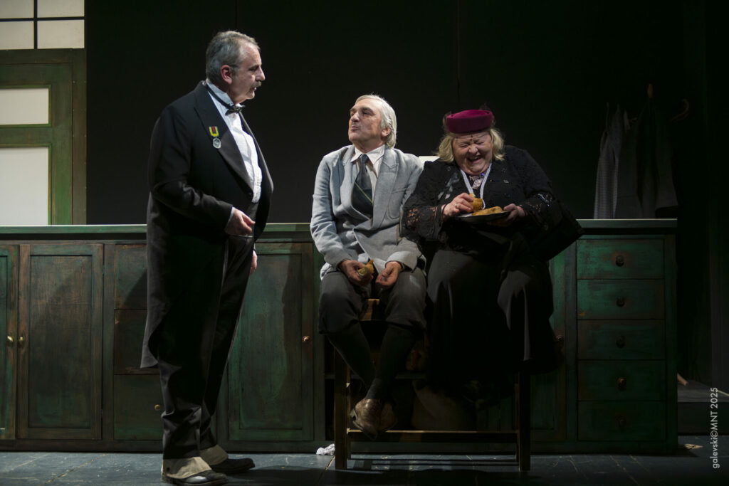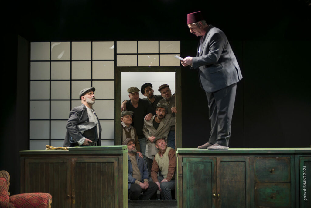 Претставата е во режија на Егон Савин, еден од водечките театарски режисери на Балканот. Во неа играат: Александар Микиќ, Дарја Ризова, Тони Михајловски, Јордан Симонов, Тања Кочовска и Александар Михајловски (глас), како и ансамблот составен од Дејан Стамчевски, Синан Ракип, Скендер Бериша, Зекирија Алим, Мирослав Атанасовски, Мартин Китановски и Хусеин Халили.