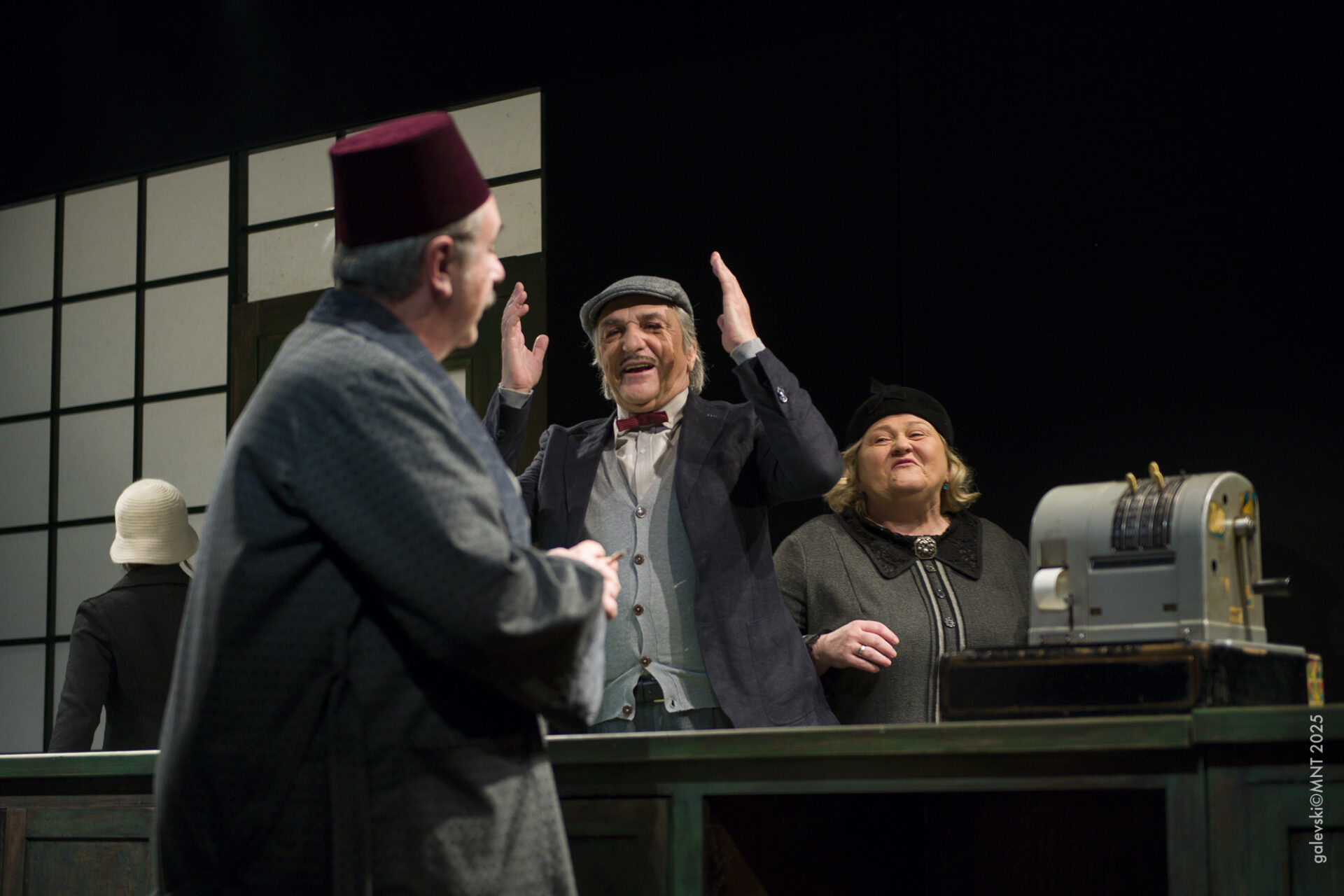 Претставата е во режија на Егон Савин, еден од водечките театарски режисери на Балканот. Во неа играат: Александар Микиќ, Дарја Ризова, Тони Михајловски, Јордан Симонов, Тања Кочовска и Александар Михајловски (глас), како и ансамблот составен од Дејан Стамчевски, Синан Ракип, Скендер Бериша, Зекирија Алим, Мирослав Атанасовски, Мартин Китановски и Хусеин Халили.