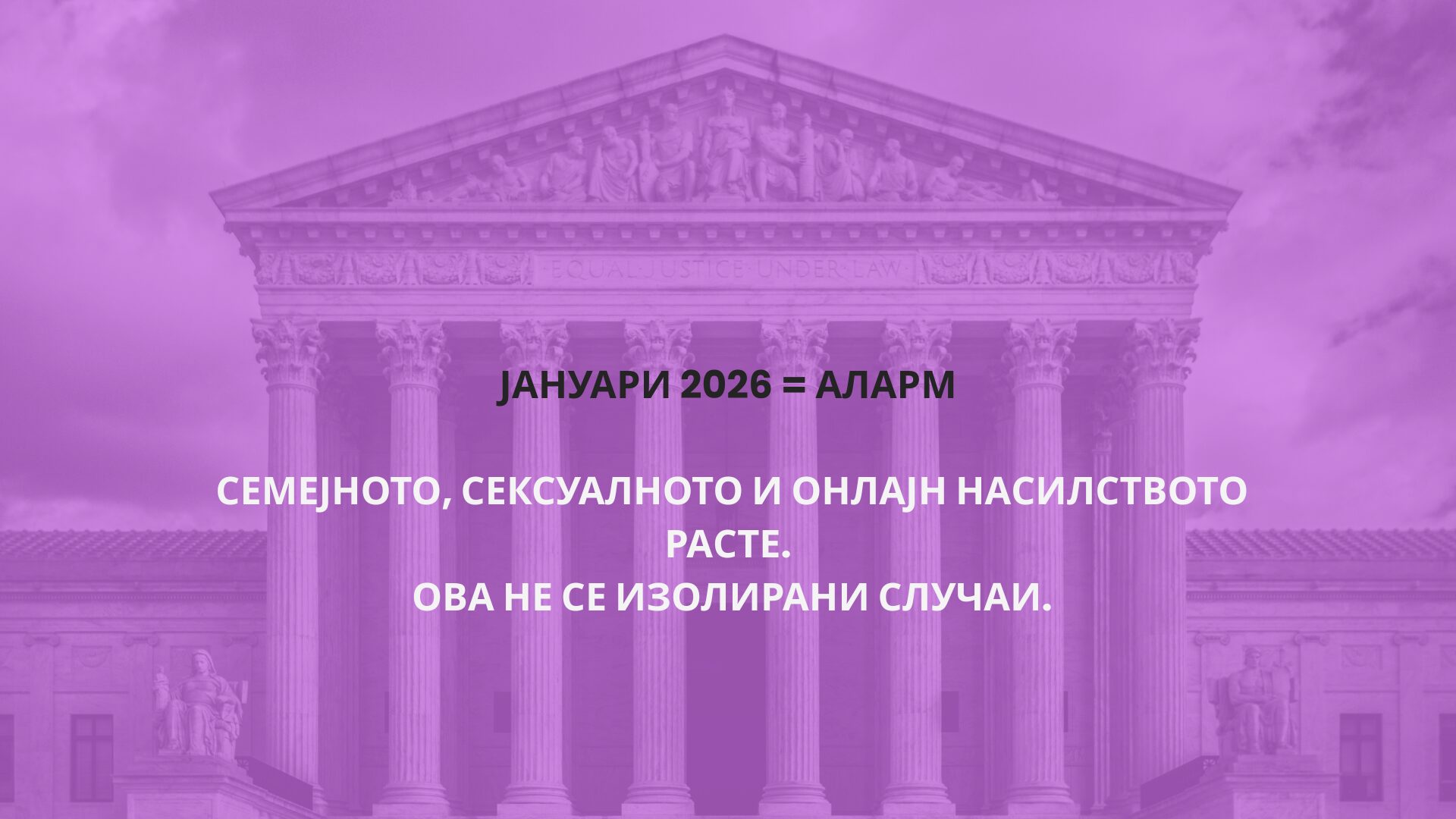 Националната мрежа против насилство врз жени и семејно насилство истакнува дека јануари 2026 година, иако сè уште не е завршен, веќе се наметнува како исклучително алармантен период со низа тешки случаи на семејно, партнерско, сексуално и онлајн насилство. Според Мрежата, овие настани јасно покажуваат дека родово-базираното насилство во Северна Македонија не е исклучок, туку длабоко вкоренет, хроничен и системски проблем.