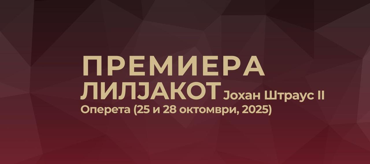 На големата сцена на Националната опера и балет ќе се одржи премиера на едно од најпопуларните и највесели дела на сите времиња – оперетата „Лилјакот“ од Јохан Штраус II. Премиерното издание ќе се случи на 25 октомври 2025 година со почеток во 20.00 часот, додека пак втората изведба на оперетата е закажана за 28 октомври, 20.00 ч.