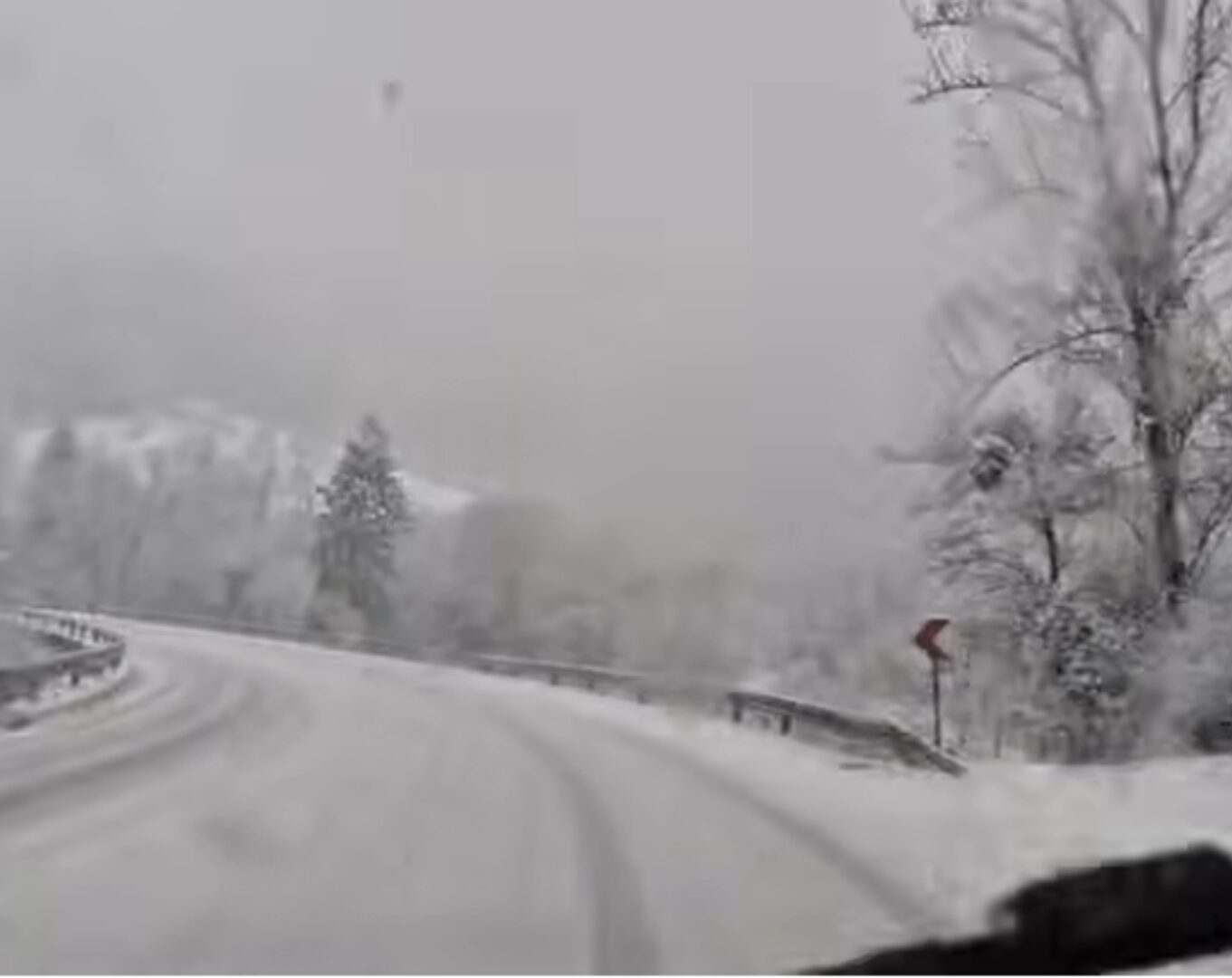 Во Брадина, патиштата се веќе покриени со снег, а видливоста е значително намалена. Сообраќајот се одвива отежнато, што претставува ризик за возачите.