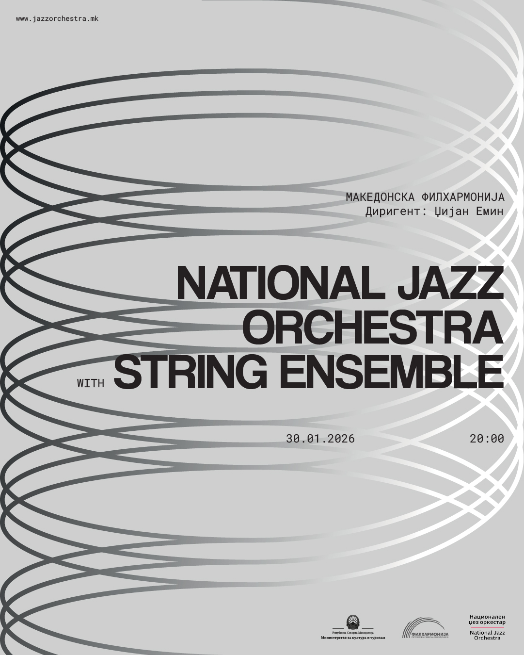 На 30 јануари 2026 година, со почеток во 20:00 часот, во Македонската филхармонија, Националниот џез оркестар ќе ја отвори концертната сезона со концерт насловен National Jazz Orchestra with String Ensemble.