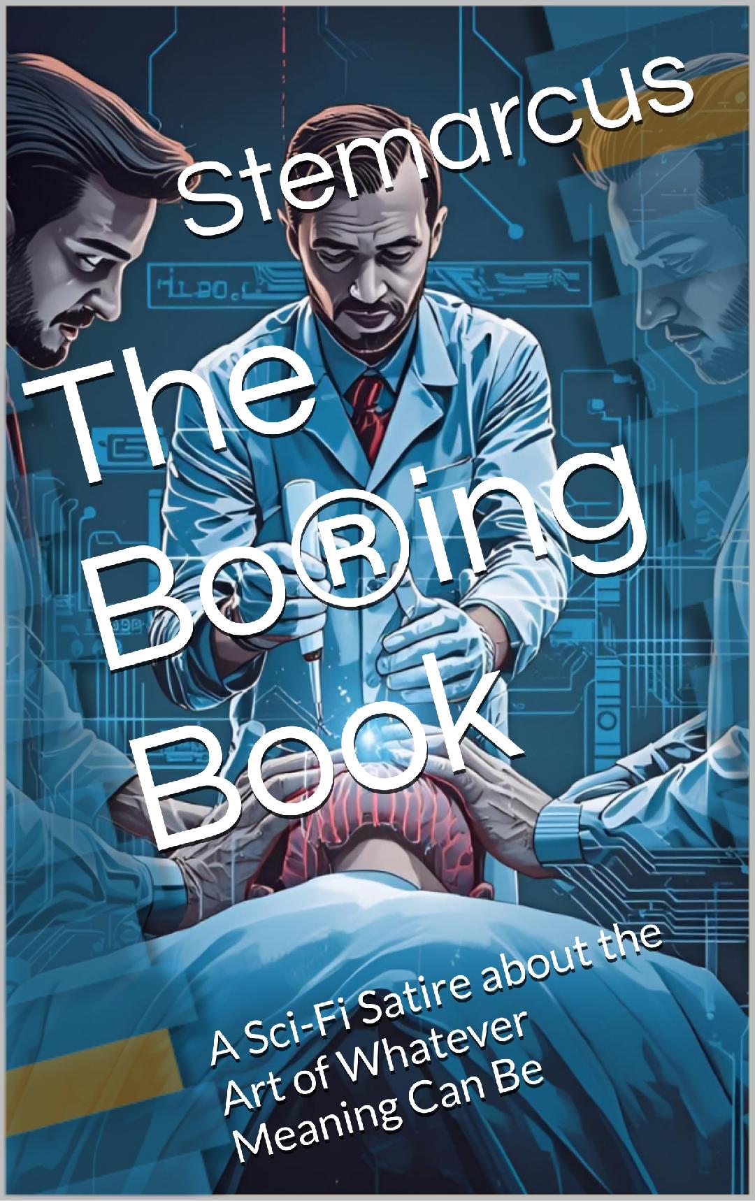 Новелата, со англиски наслов The Bo®ing Book: A Sci-Fi Satire about the Art of Whatever Meaning Can Be, има динамично дејство кое се развива низ повеќенасочна, сложена и нелинеарно структурирана композиција, подлегнувајќи на постојани и тешко предвидливи пресврти, кои освен што ја одразуваат повеќеслојноста на самата реалност, ја наоѓаат својата улога и како дел од експериментот кој е и централна тема. Една од главните области на овој истражувачки експеримент е развивањето спефицични облици на вештачка интелигенција чијашто цел, покрај другото, е и проучувањето на досадата, наспроти афинитетите и допаѓањата, со цел подлабинско и посеопфатно разбирање на човекот и човечкото преку уште една негова одлика.