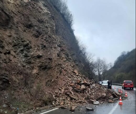 Поситни одрони се евидентирани и на други делници долж овој пат, што доведува до отежнато и забавено одвивање на сообраќајот. Коловозната површина е влажна, а видливоста намалена, што дополнително го усложнува возењето.