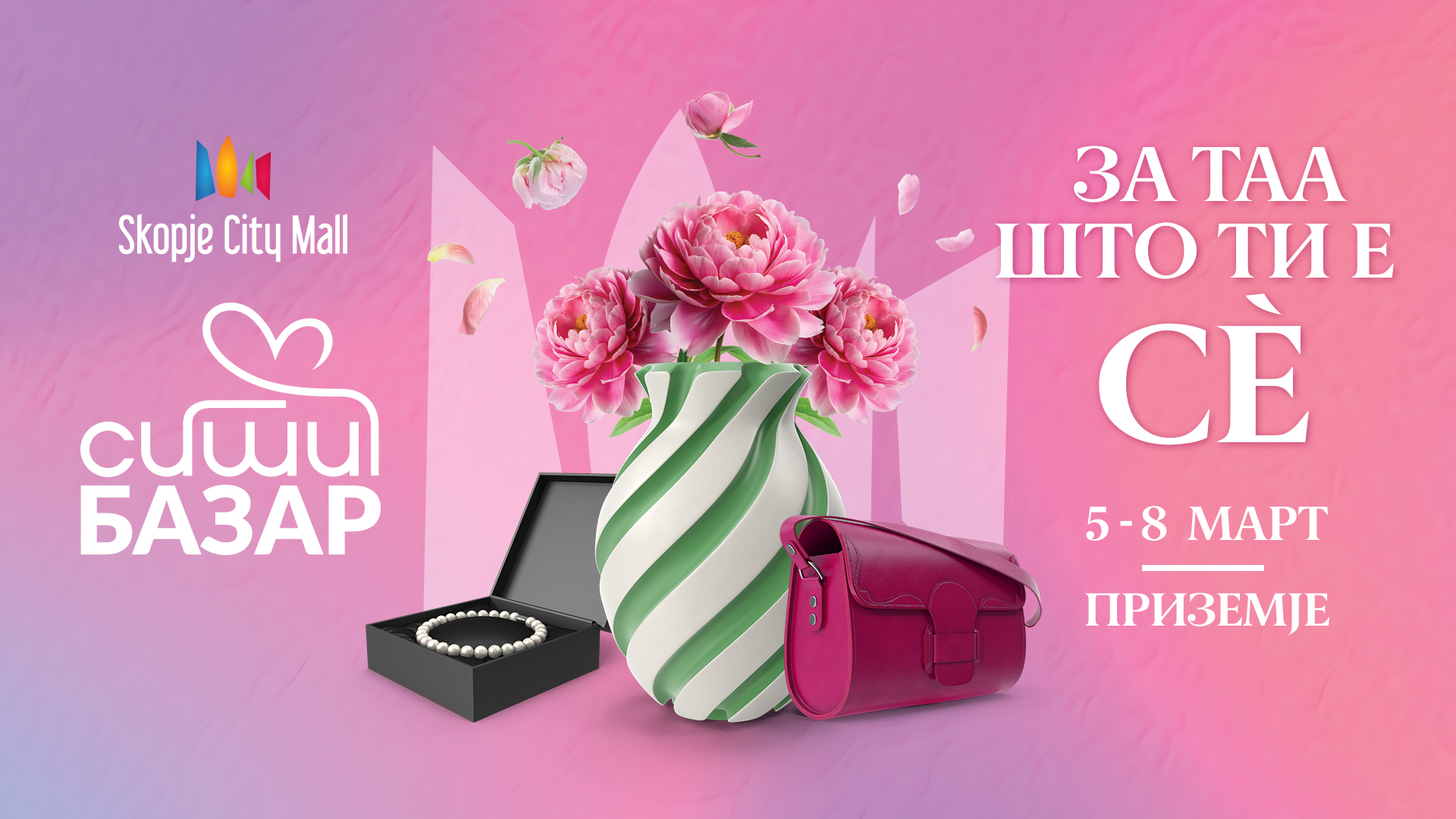 Во пресрет на Денот на жената, од 5 до 8 март во Скопје Сити Мол ќе се одржи осмомартовски базар под слоганот „За таа што ти е сè“. Настанот ќе се одвива на приземјето на трговскиот центар и ќе обедини повеќе од 30 домашни креативци и мали брендови.