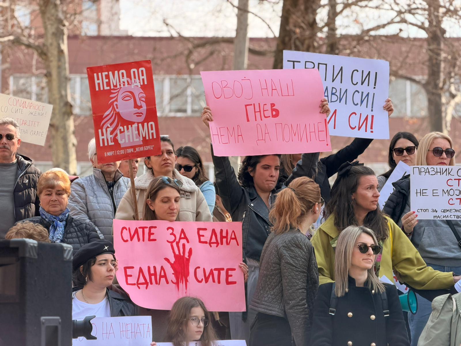 Осмомартовскиот марш започна со една минута молк за сите жени кои не се со нас, затоа што системот не ги заштити.