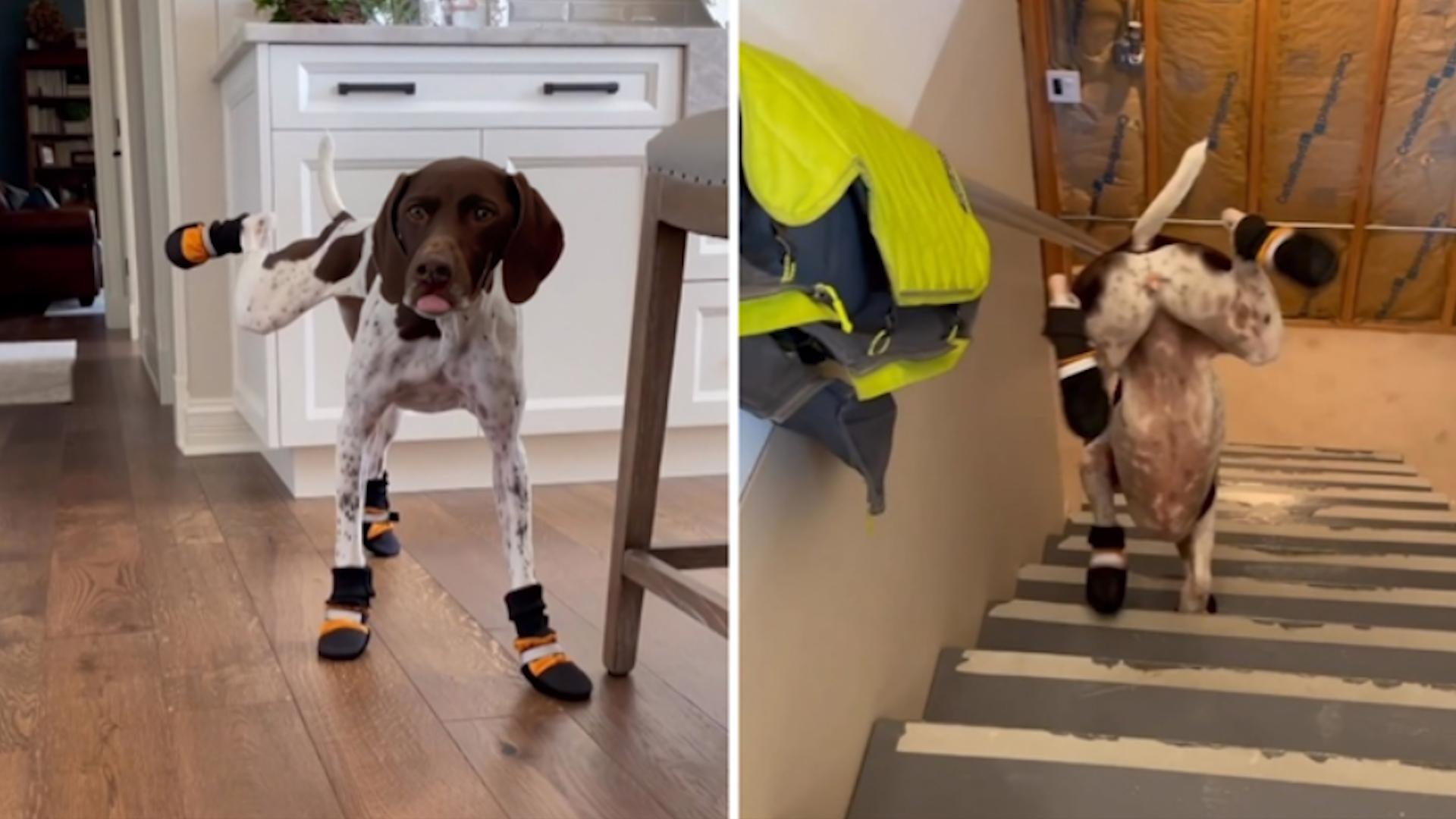Подгответе се да се смеете гласно додека ги гледате овие две кучиња како се обидуваат да одат во чизми.