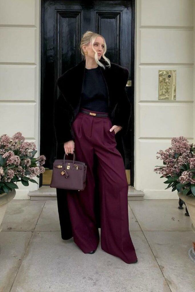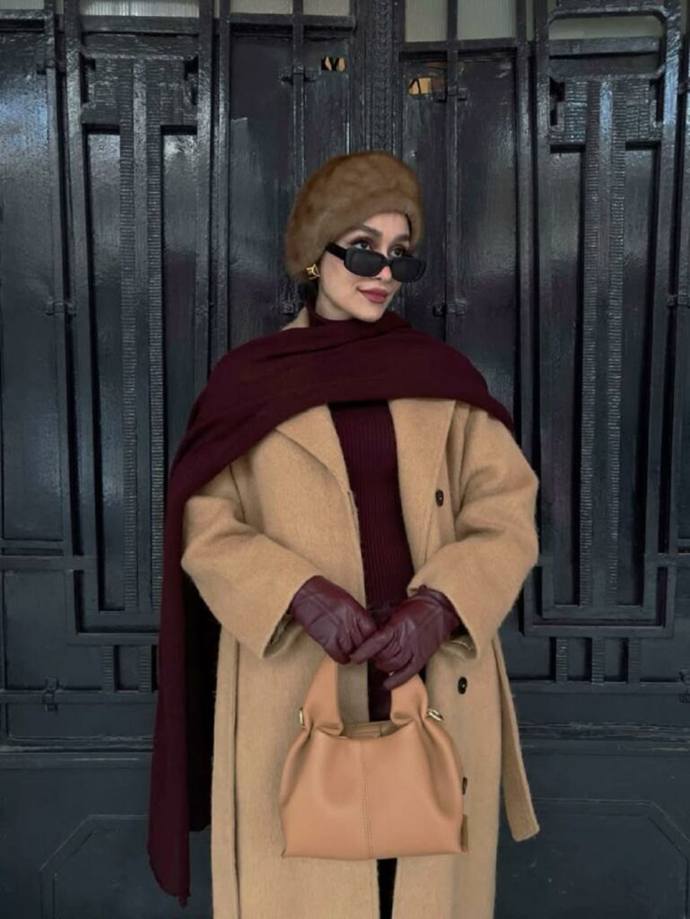 За елегантен и дискретен изглед, комбинирајте бордо палто со класични зимски тонови како кафеава, сива и црна, а ако сакате да се истакнете, носете го со неочекувани нијанси како мека праска или валкано розова. За најсмелите – монохроматскиот стил од глава до пети во бордо тонови е хит.
