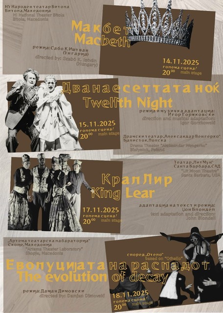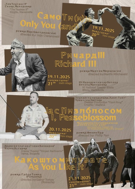 - 19.11– “Ричард III” – НУ Народен театар Битола, Македонија, режија :Мартин Мирчевски, почеток 21 часот,
