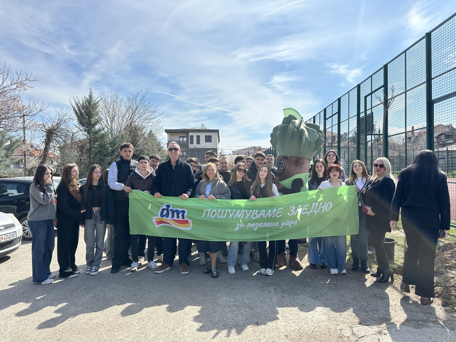 Во рамките на проектот „Зелена иднина: од градинка до училиште“, компанијата dm drogerie market продолжува со активности за раззеленување и уредување на дворовите на воспитно-образовни установи, кои се реализираат во партнерство со Македонското еколошко друштво (МЕД). На 23 и 27 март беа спроведени нови акции за пошумување во гимназијата „Гоце Делчев“ во Куманово и во градинката „Детска радост“ во Гевгелија, при што беа засадени вкупно 133 садници.