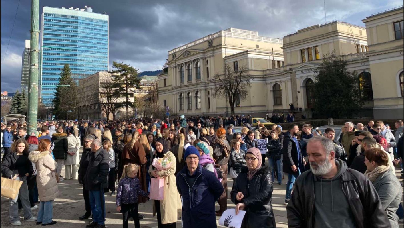 Вчера, неколку илјади граѓани, предводени од средношколци и студенти, мирно маршираа од Националниот музеј преку Скендерија до Обвинителството на Сараевскиот кантон, а потоа покрај Претседателството на БиХ повторно до музејот.
