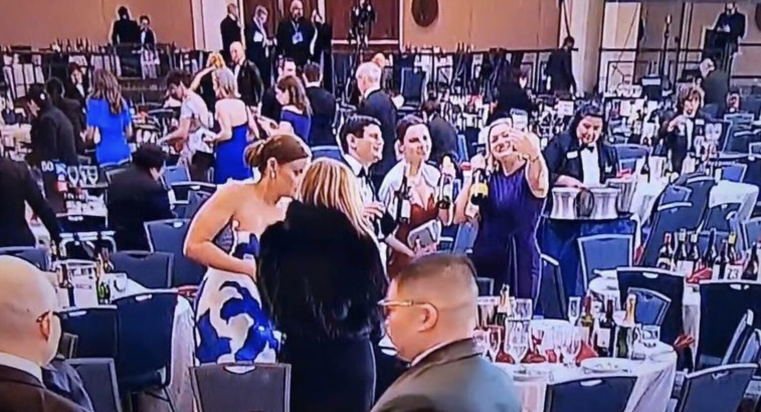 Покрај драматичните сцени, вниманието на јавноста го привлекоа и видеа кои станаа вирални на социјалните мрежи. На нив се гледа како дел од присутните, наместо веднаш да ја напуштат салата, фотографираат или земаат шишиња вино додека се евакуираат.