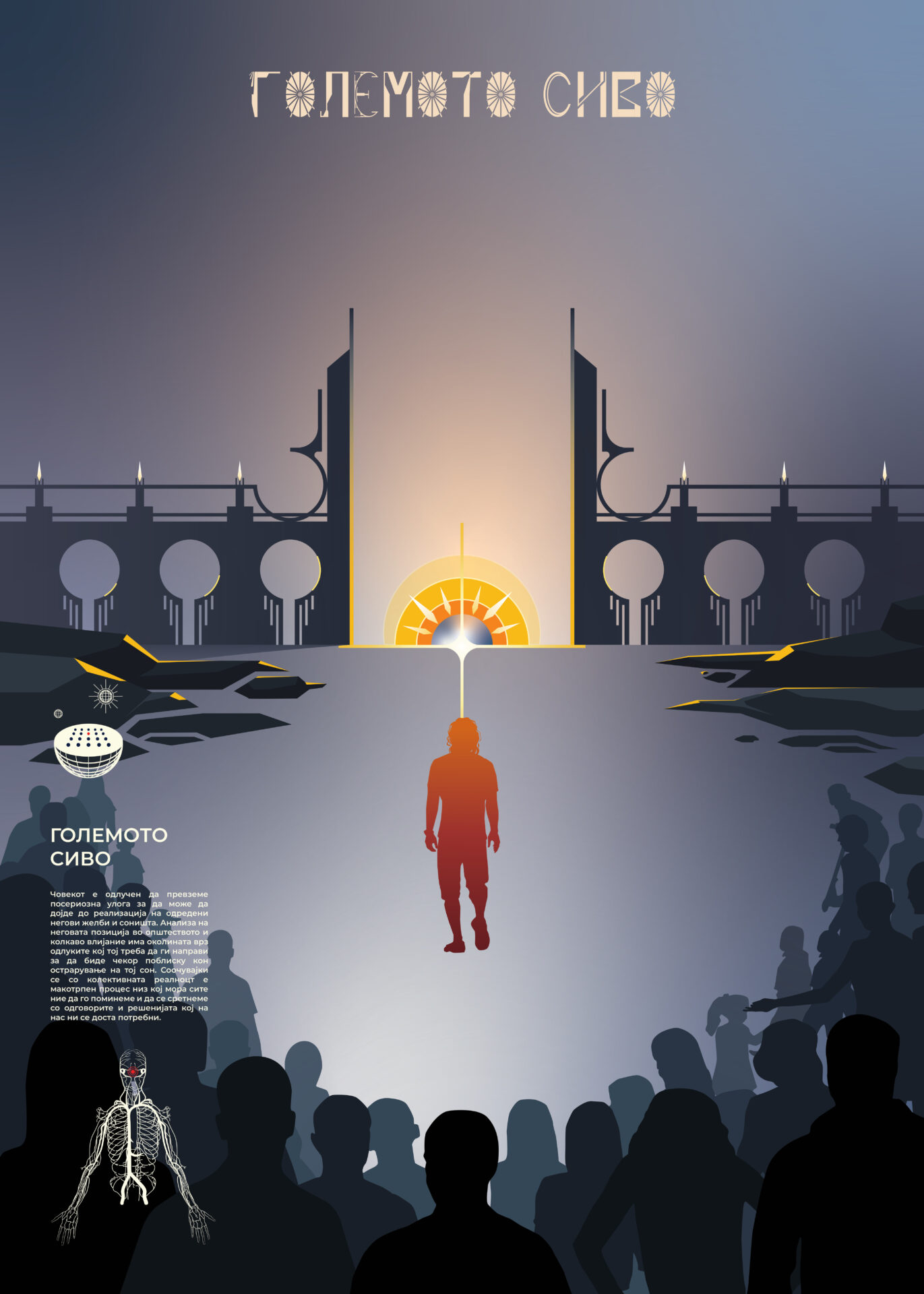 Проектот ја надминува човечката фигура како референтна точка и се насочува кон невидливата архитектура на материјата — нејзините ритмови, тензии и трансформации — изразени преку серија цртежи инсталирани како имерзивна просторна инсталација.